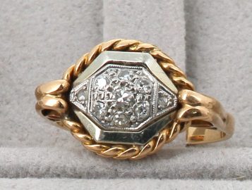 Bague deux ors 18 cts sertie de diamants et roses, poids brut 4,20 grs. TDD…