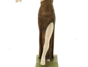 BARTHELEMY Louis (XIX-XX) " Danseuse", chryséléphantine reposant sur un socle en onyx vert et marbre…