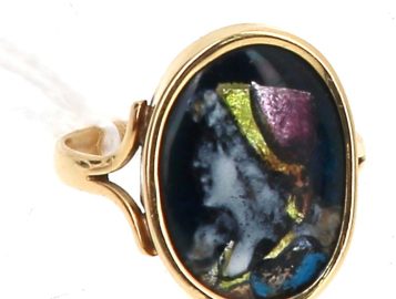 Bague en or jaune 18 cts sertie d'un émail de Limoges à décor d'un profil…