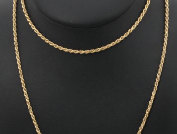 Longue chaîne en or jaune 18 carats avec chaînette de sécurité, maille corde, L 80,5…