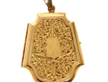 Pendentif ouvrant en or jaune 18 cts, poinçon tête d'aigle, décor de rinceaux. H 4…