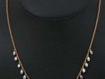 Ravissant collier en or jaune 18 cts (750ème) serti de 21 perles de Tahiti "Keshy",…
