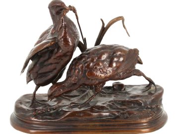 Jules MOIGNIEZ (1835 -1894) - Deux perdrix picorant du blé, sujet en bronze à patine…