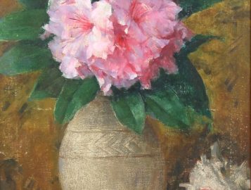Madeleine FIE-FIEUX (1897-1955) "Bouquet de rhododendrons et coquillage", huile sur toile, signée bas gauche, 55…