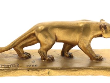 Ecole Française années 30 - "Tigre à l'affût", sujet en bronze doré signé "P. MOLLET"…