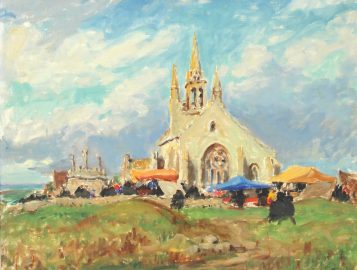 Emile SIMON (1890-1976) "Marché à Concarneau", huile sur panneau, signée bas gauche, 32 x 40…