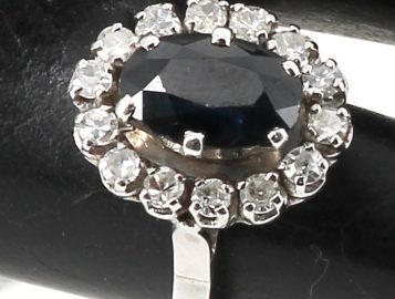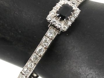 Bracelet serti en son centre d'un saphir entouré de 12 diamants taille moderne, et de…