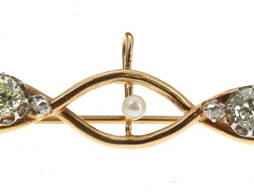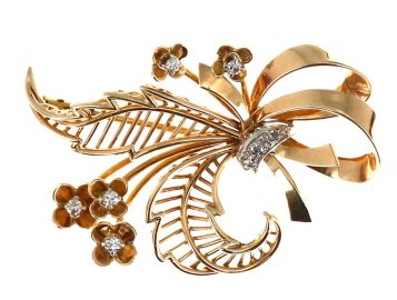 Broche années 50 en or jaune 18 cts, platine et diamants, poinçons tête d'aigle et…