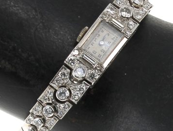 Montre de dame ART DECO en or gris, platine et diamants, poinçon tête d'aigle et…