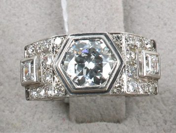 Bague ART DECO sertie d'un diamant 1/2 taille d'environ 1,5 carat, 2 diamants calibrés et…
