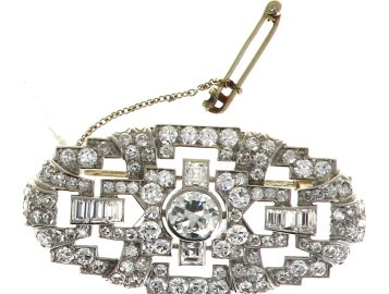 Broche plaque en or gris et platine sertie de diamants, poinçons tête de chien et…