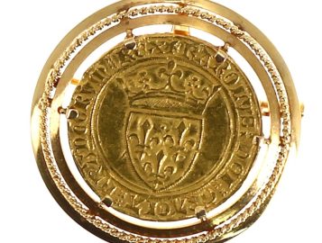 Ecu à la couronne en or monté en broche-pendentif, monture or jaune 18 carats, poinçon…
