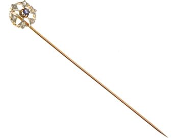 Epingle à cravate en or 18 cts, poinçon tête d'aigle, sertie de roses, poids brut…