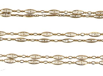 Collier en or jaune 18 cts (750ème) à maille filigranée, poids 12,30 grs. L 64…