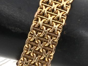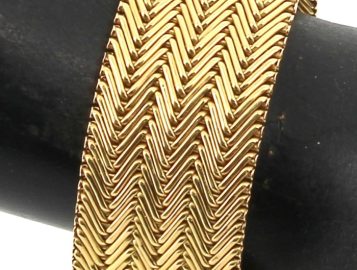 Bracelet ligne en or jaune 18 cts, large, maille chevrons, largeur 2,7 cm. Long. 18,5…