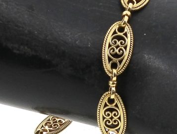 Bracelet en or jaune 18 cts filigrané, poinçon charançon, chaînette de sécurité, poids 11,90 grs