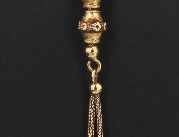 Chaîne de montre en or jaune 18 cts, poinçon tête de cheval, fermoir or/argent. Poids…