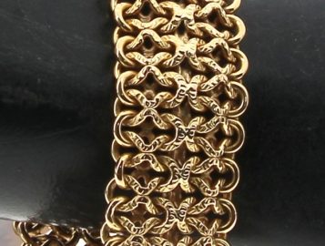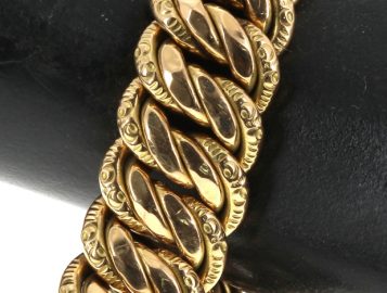 Bracelet ligne à maille travaillée en or jaune 18 cts, poids 30,70 grs. L 19,4…