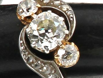 Bague ancienne deux ors 18 cts, poinçon tête d'aigle, sertie de 3 diamants TA en…