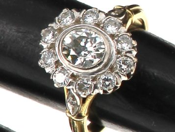 Bague bicolore en or 18 cts sertie d'un diamant taille ancienne env. 0,90 ct de…