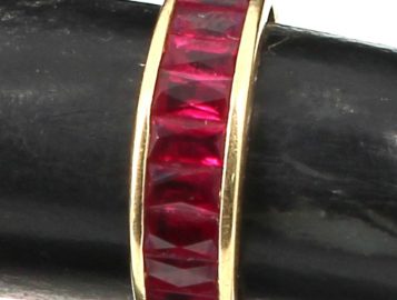 Bague jonc en or jaune 18 cts sertie de rubis calibrés, poids brut 3,50 grs.…