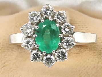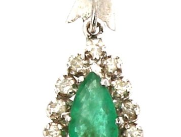 Pendentif en or gris serti d'une émeraude poire (9 x 5 mm) entourée de 12…