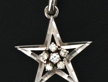 Pendentif étoile en or gris 18 cts, poinçon tête d'aigle, serti de 6 diamants, poids…
