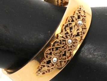 Bracelet jonc ridige ouvrant en or jaune 18 cts, poinçon tête d'aigle, sertie de 3…