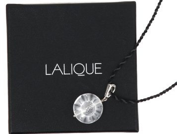 LALIQUE - Pendentif fleur 2 faces, bélière en argent 925ème, sur cordon noir, boîte d'origine